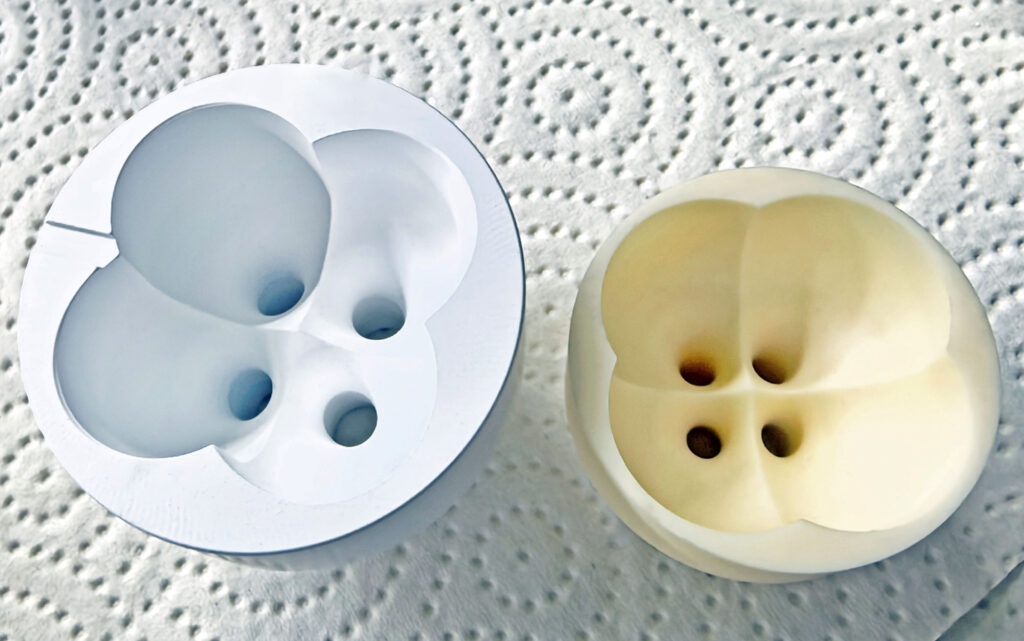Production in Mannheim begins with pressing a ceramic powder mixed with a small amount of organic binder into a green compact. This fragile but machinable part is strengthened through cold isostatic pressing at around 2,000 bar. It is still relatively soft and must be oversized by about 20% to compensate for shrinkage during sintering.