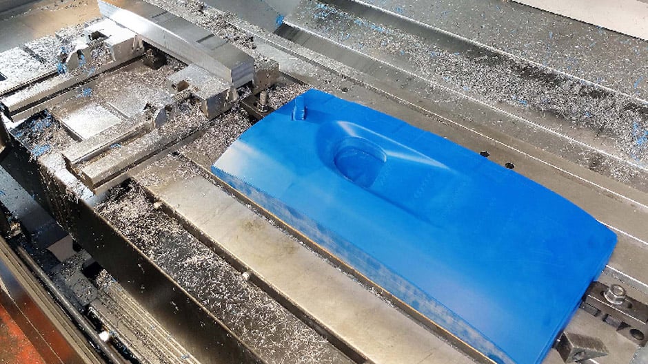 Additional duties of the latest machine are the manufacture of inspection fixtures and composite tryout tools, milling and drilling of large parts such as door sills, and production of smaller components such as bosses and machine pins if the other machining centre is occupied.