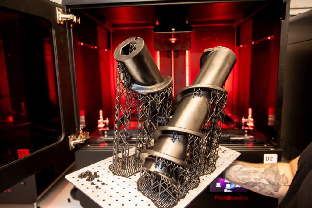 RYSE exports many parts to the US. Why here? “The UK economy is pretty much tanked at the moment,” Mitchell says. “People are not investing much in assets and equipment, from what we see, and I feel there’s a complete and utter lack of bravery sometimes. The Americans still possess this.” Asked what type of car parts RYSE can manufacture, he is equally bullish. “Literally everything – think full interior substrates, rear seat covers, full HVAC systems, full brake duct kits, engine air intakes, manifolds, coolant tanks,” and the list continues. “The penny has dropped that 3D printing is not just for prototypes anymore. Hypercars and Formula 1 have shown it is viable for production, and now mainstream carmakers are using these parts in volume.”