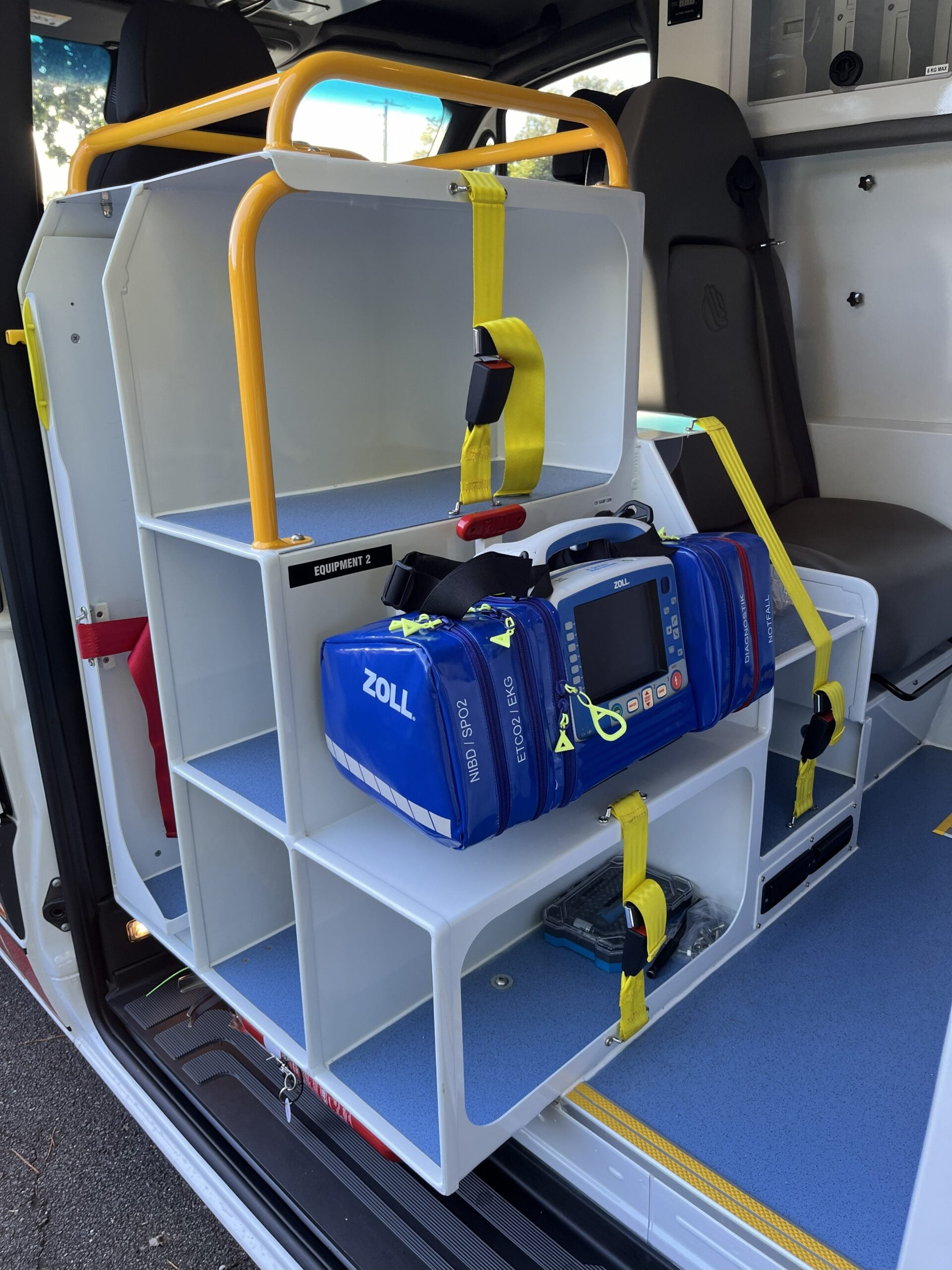 When the business was approached to develop a system of mounting this life saving equipment in a vehicle transporting critically ill patients to hospital by Staffordshire Ambulance Service, Shaun developed a secure bracket system that had the ability to easily release the defibrillator so it could be carried by the crew to the patients. Shaun starts by saying “We were keen to get involved in this project and knew that the system we designed had to be robust. This is because the defibrillators and associated equipment was not light. We also had to think carefully about how it disconnected from the bracket.”