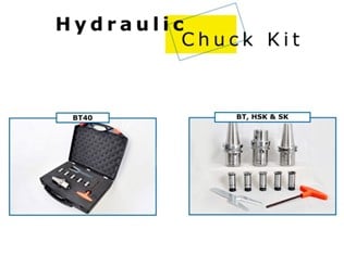 Hydraulic chucks provide high accuracy (typically 0.003mm) and repeatability with exceptional torque transfer of cutting forces and die-making, as well as the machining of precision automotive and aerospace components. Available mounts include BT, KBT, SK, HSK, CAT, Cylindrical Shank, VDI Shank and ER.