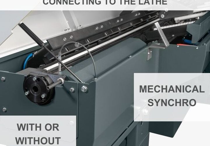 Alternatively, using the front rest option, the barfeed incorporates a crucial active guiding zone. This electronically controlled feature, managed through parameters set in the Human-Machine Interface (HMI), stabilizes the bar by closing around it. It then opens to allow the pusher to pass through, offering stability when the gap between the bar and guiding elements widens.