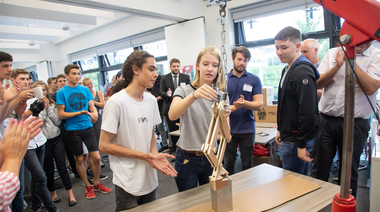 In total, 28 students swapped their daily lessons for the chance to test out their engineering and design skills by using basic materials and tools to make a device capable of lifting a 13kg block of stainless steel using just a friction grip.