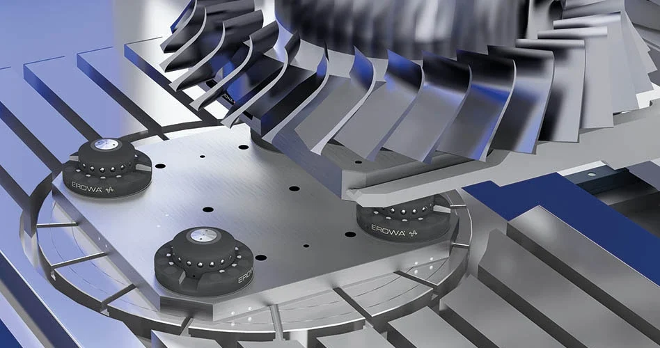 Each GTS chuck delivers a clamping force of 80 kN, ensuring a rigid, vibration-resistant connection to the machine table. This robust setup enhances machining stability, improves surface finishes, and ensures process repeatability — even when working on large components or tough materials. The system’s design effectively addresses one of the biggest challenges in heavy-duty machining: maintaining precision and consistency while handling significant mechanical loads.