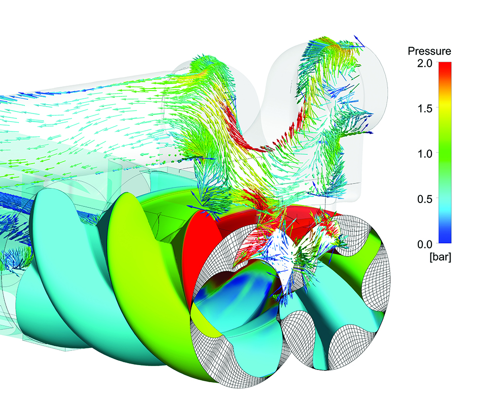 “Pressure and temperature increases are caused by the reduction of volume in the compressor – you squeeze the gas between the compressor elements,” says Professor Ahmed Kovacevic. “In a screw compressor these form very complex shapes, formed by the rotors and the casing. The main obstacle in using CFD to see inside these machines was the lack of a reliable method to produce a numerical grid needed for modelling these machines with CFD, which our method has achieved.”