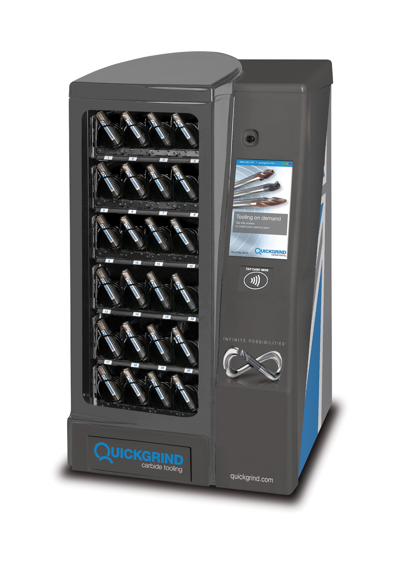 But with so many vendors in the marketplace, why chose a Quickvend solution? Tim continues: Quickgrind’s robust, proven tool vending solutions are the solution to all the previously mentioned issues and more. Once we have audited your tooling requirements and consumption levels, we can supply engineers with a fully stocked machine – as our range of machines can hold from 300 to 1,680+ individual tools. The usage and stock levels are then automatically monitored, and replacement tools are sent-out before your stocks deplete. Because your tooling inventory and usage levels are pre-determined, you regain complete control of your purchase administration time and costs.