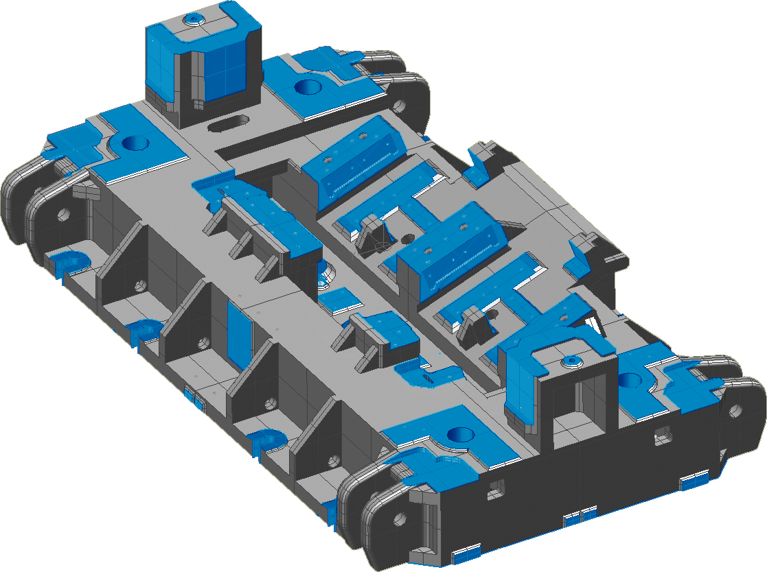 Andrew describes: The feature library within Tebis automatically detects and assigns features to the geometries and automatically group features for machining. In addition to working with ruled geometries, Tebis software also recognises free-form geometries and do feature-based NC programming. Features are not limited to the usual 2.5D type features such as holes and a slots, Tebis software is capable of dealing with 2D open features and free-form shapes.