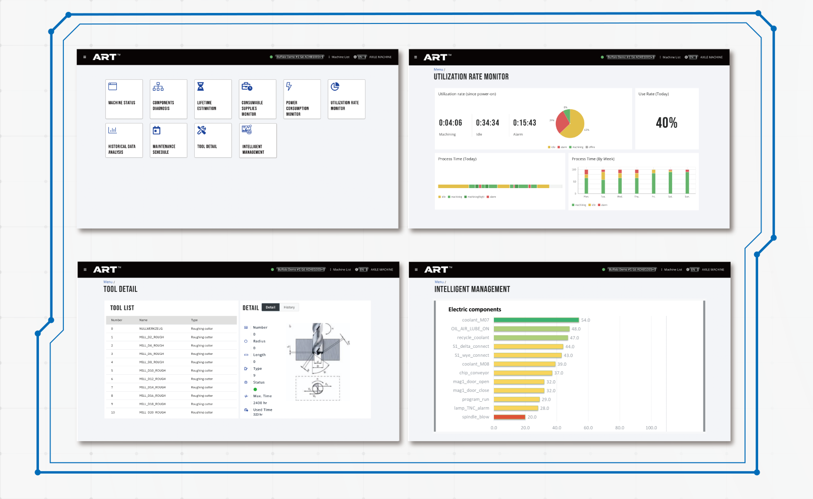 The DC12iMT is equipped with the ART™ intelligent monitoring system (hardware & software). Which enables the adoption of automation and optimises manufacturing productivity through real-time machining data, achieving sustainability in all aspects of business operations.