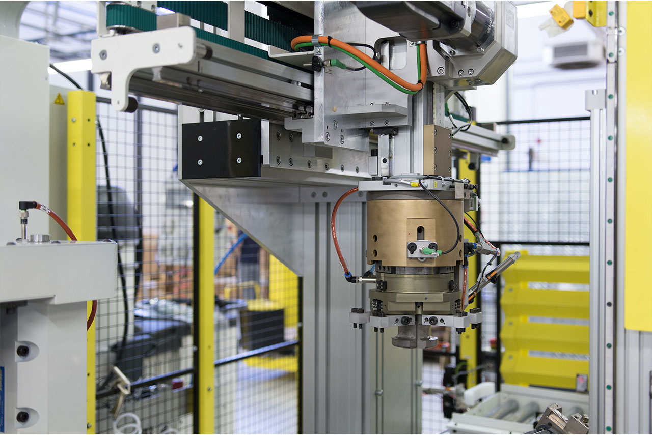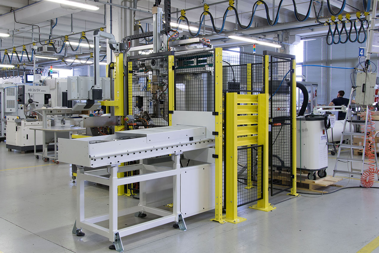• Parts loading is performed by an operator, while parts unloading is automatically performed by a controlled pick and place with an expandable gripper.