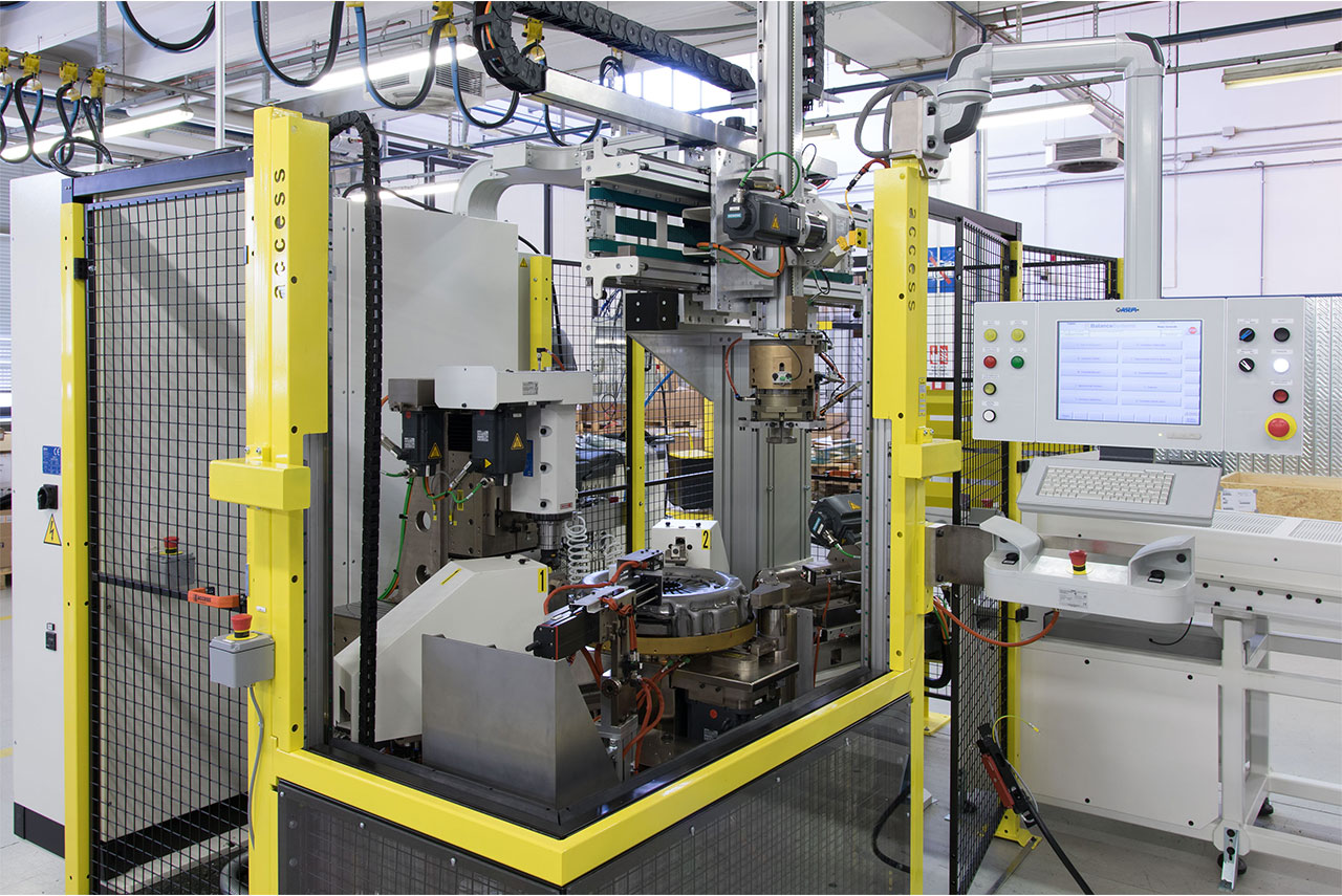 • Vertical automatic balancing machine, specifically developed for the balancing of assembled clutches on one plane (static). The unbalance is automatically corrected by axial milling and/or radial drilling.