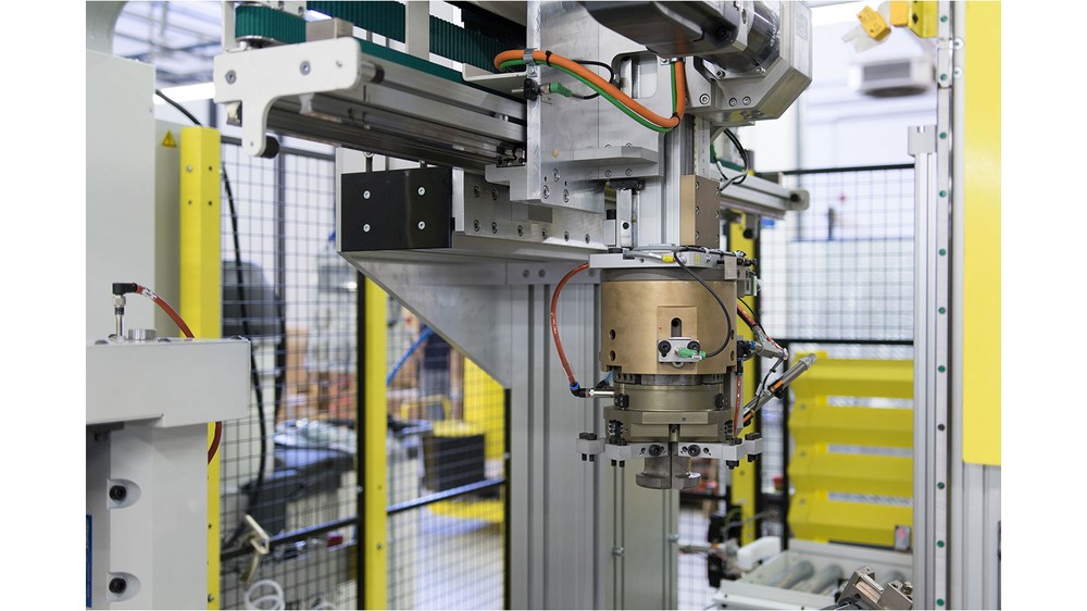 - Parts loading is performed by an operator, while parts unloading is automatically performed by a controlled pick and place with an expandable gripper.