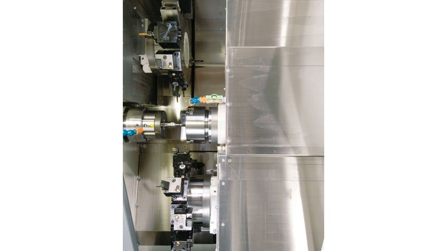 - With upper / lower turret construction, 4-axis machining as well as various other machining combinations possible on either spindle