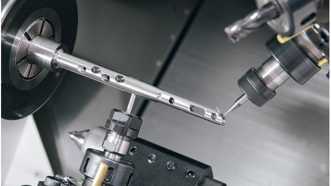 In addition to angular drilling and end milling, arbitrary contour-milling can be performed with standard driven-tool holders on the Super NTJ. The Super NTJ has ultimate flexibility with the upper turret having a B-axis, having a swivelling range of 182° and up to 48 tools. Furthermore, simultaneous cutting with upper and lower tools on L/R opposed-spindles ensures balanced processes and faster cycle times.