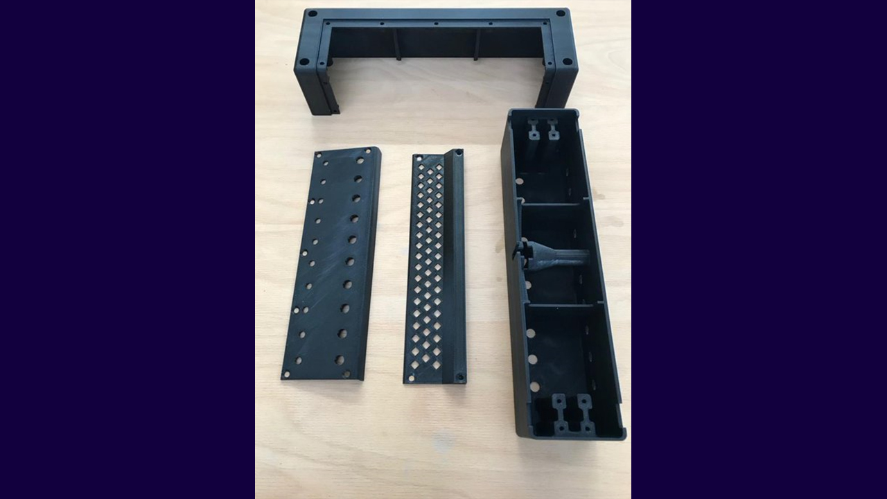 This set of PC-ABS parts were 3D printed on a Stratasys Fortus 450mc printer and were fitted onto a bespoke fixture destined for the #electricvehicle market