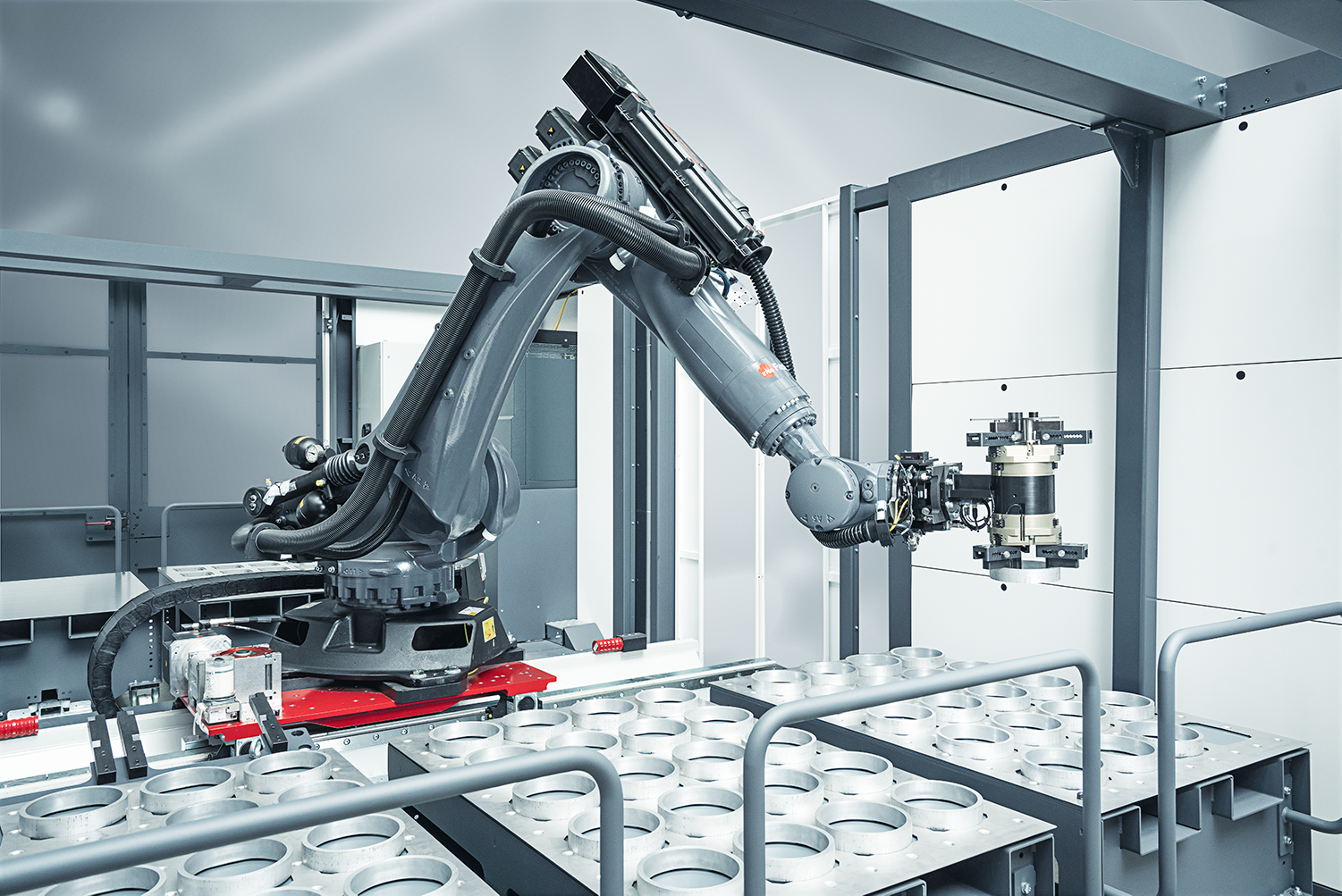 Yes. The RoboCell ONE has a powerful KUKA robot that also covers heavier workpieces. On top of that, it has plenty of reach to serve several kinds of machine tools.